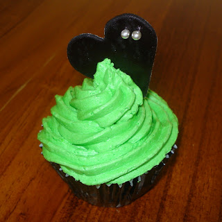 Cupcake with green icing and black heart
